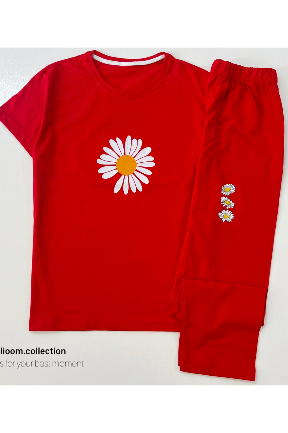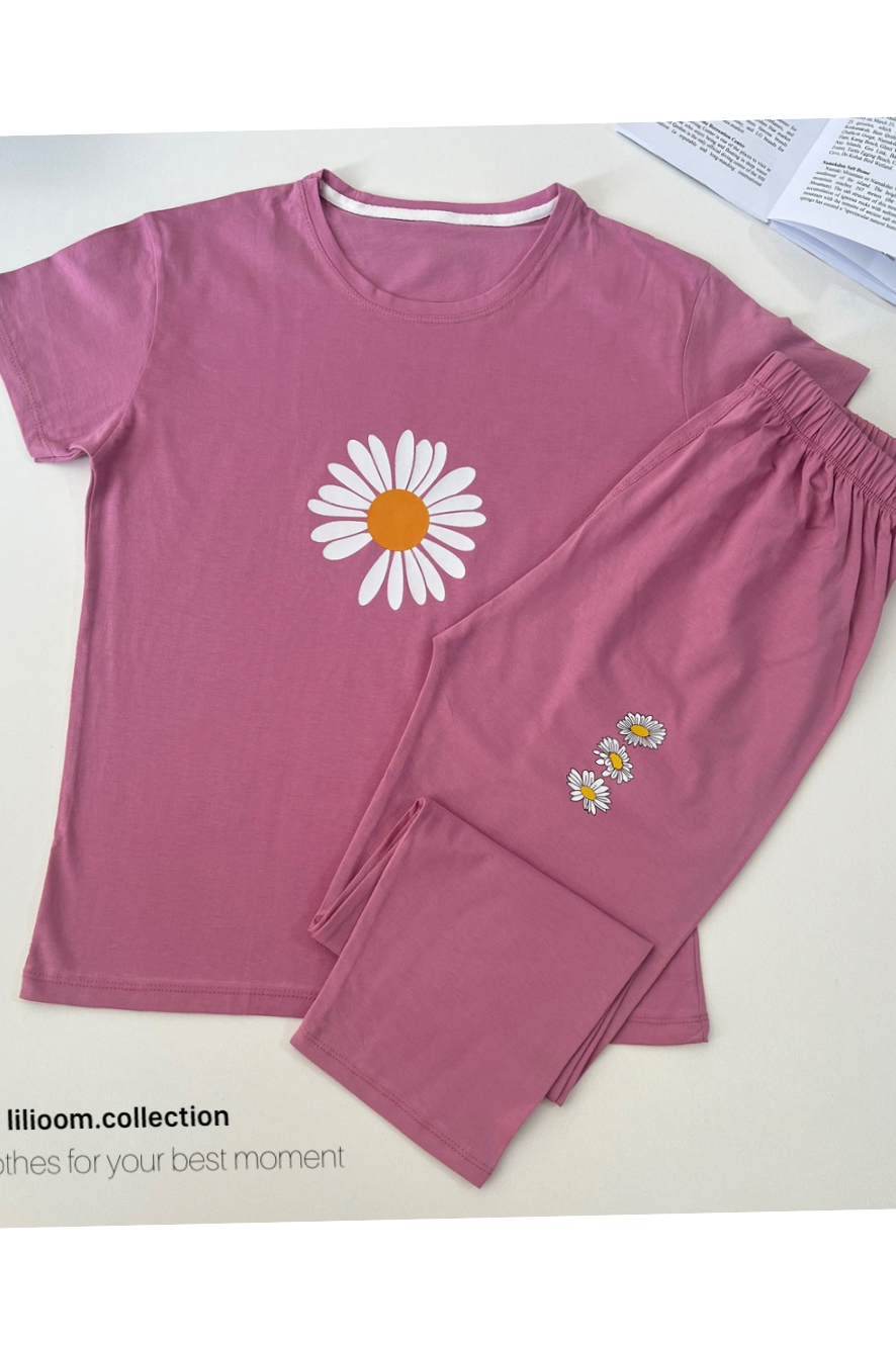 ست تیشرت شلوار زنانه مدل یقه گرد جنس نخ پنبه