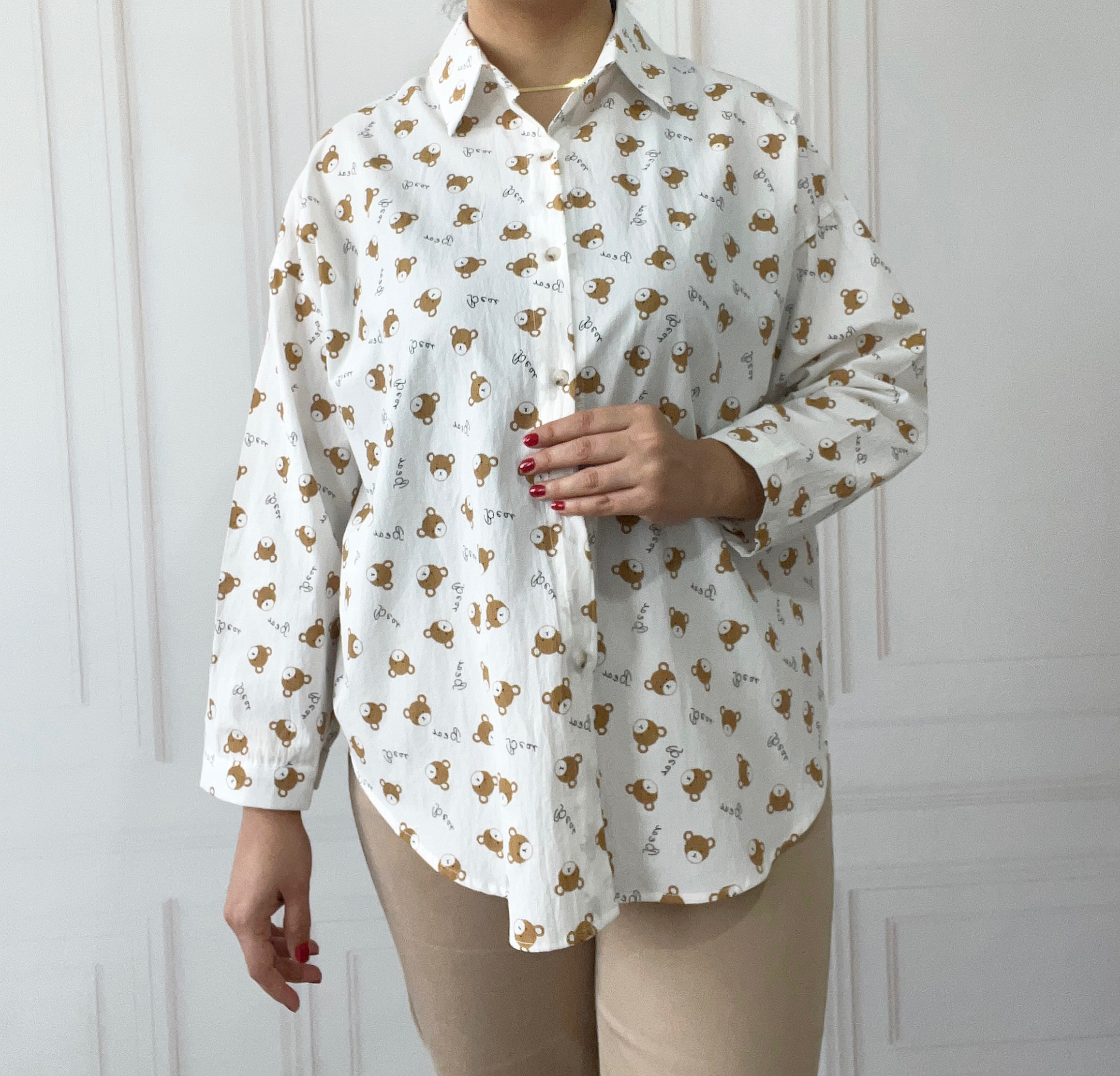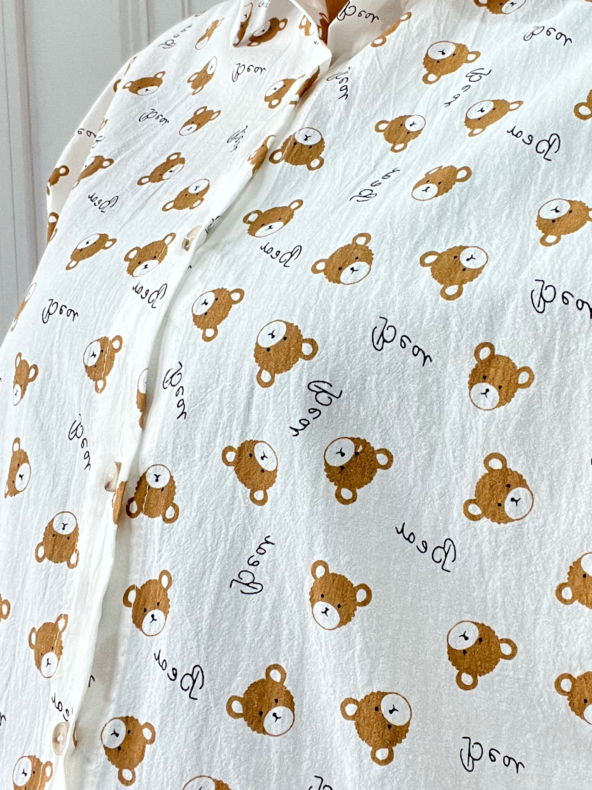 شومیز مانتویی آستین بلند طرح تدی جنس لینن