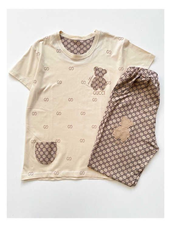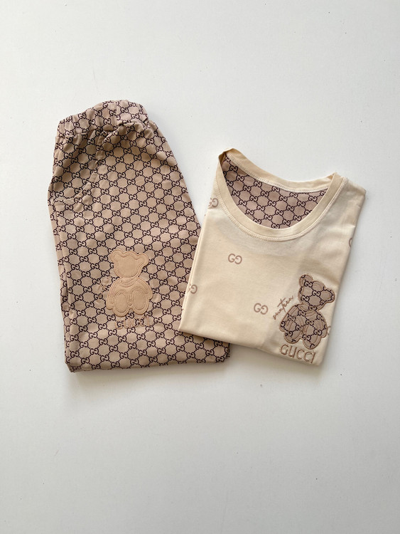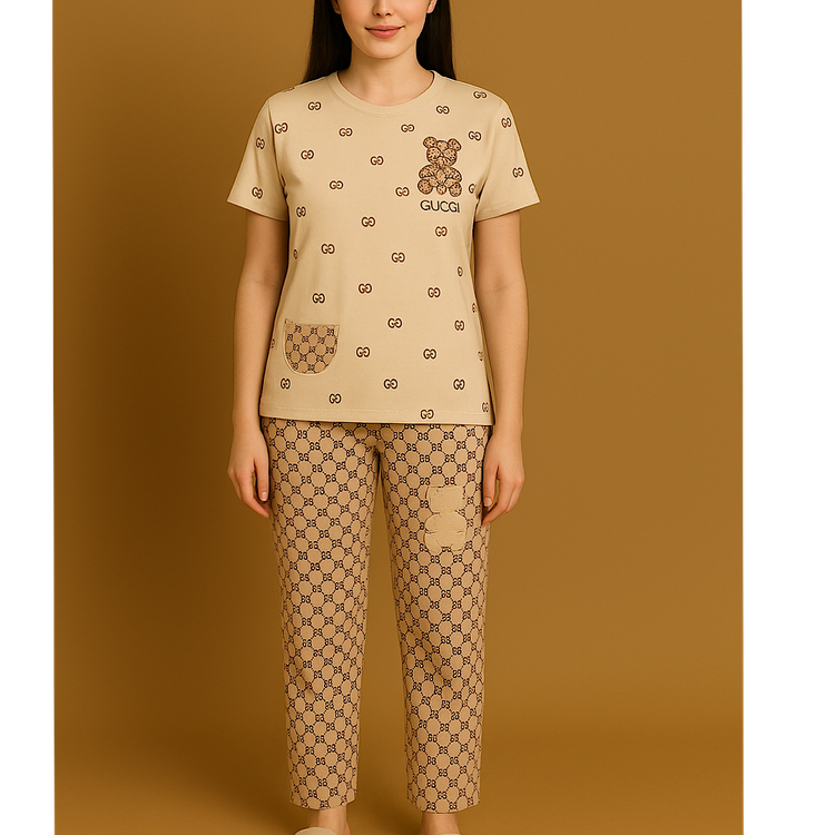 ست تیشرت شلوار جیب دار طرح گوچی گلدوزی شده