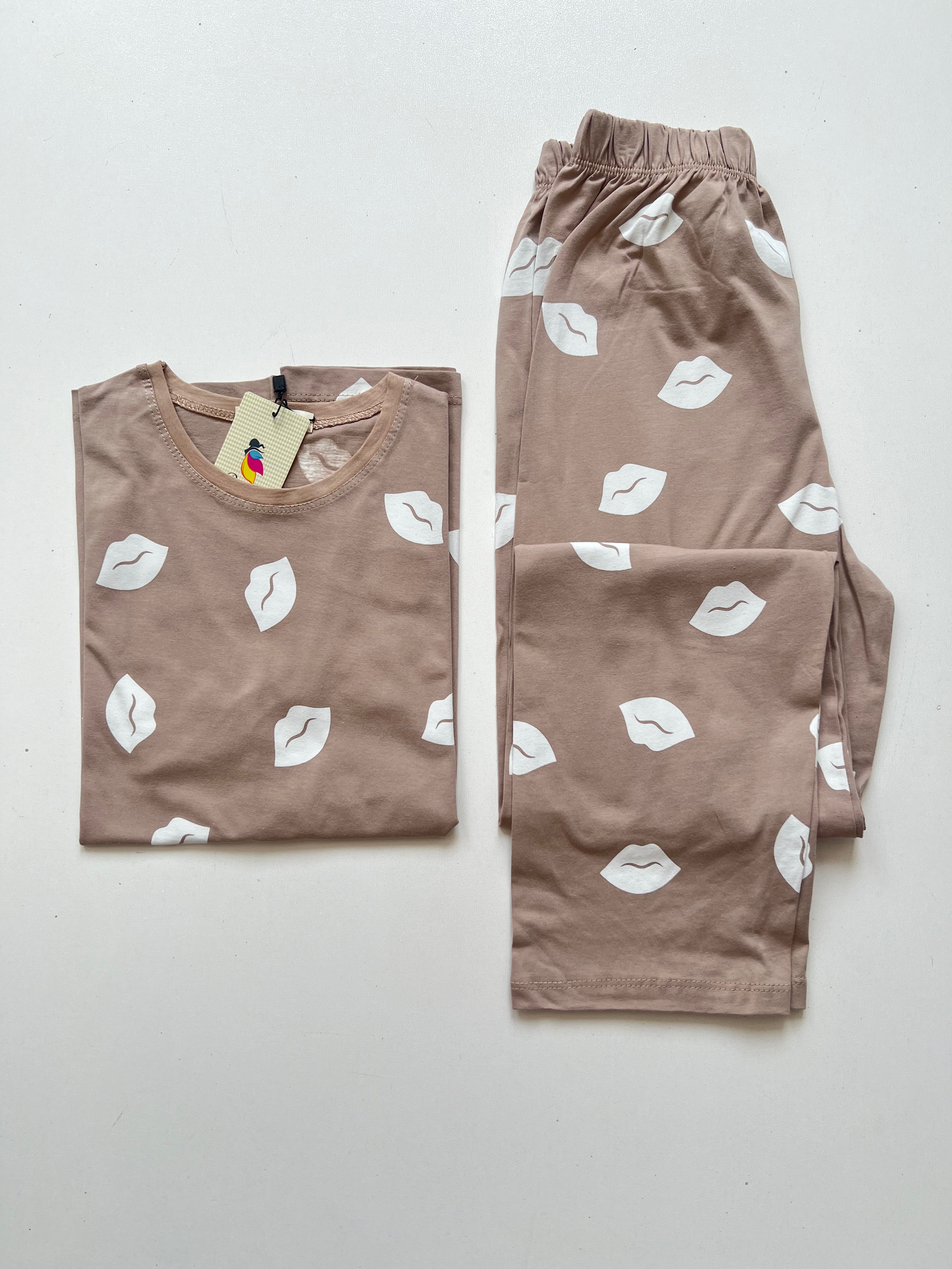 ست تیشرت شلوار زنانه طرح لب جنس نخ پنبه