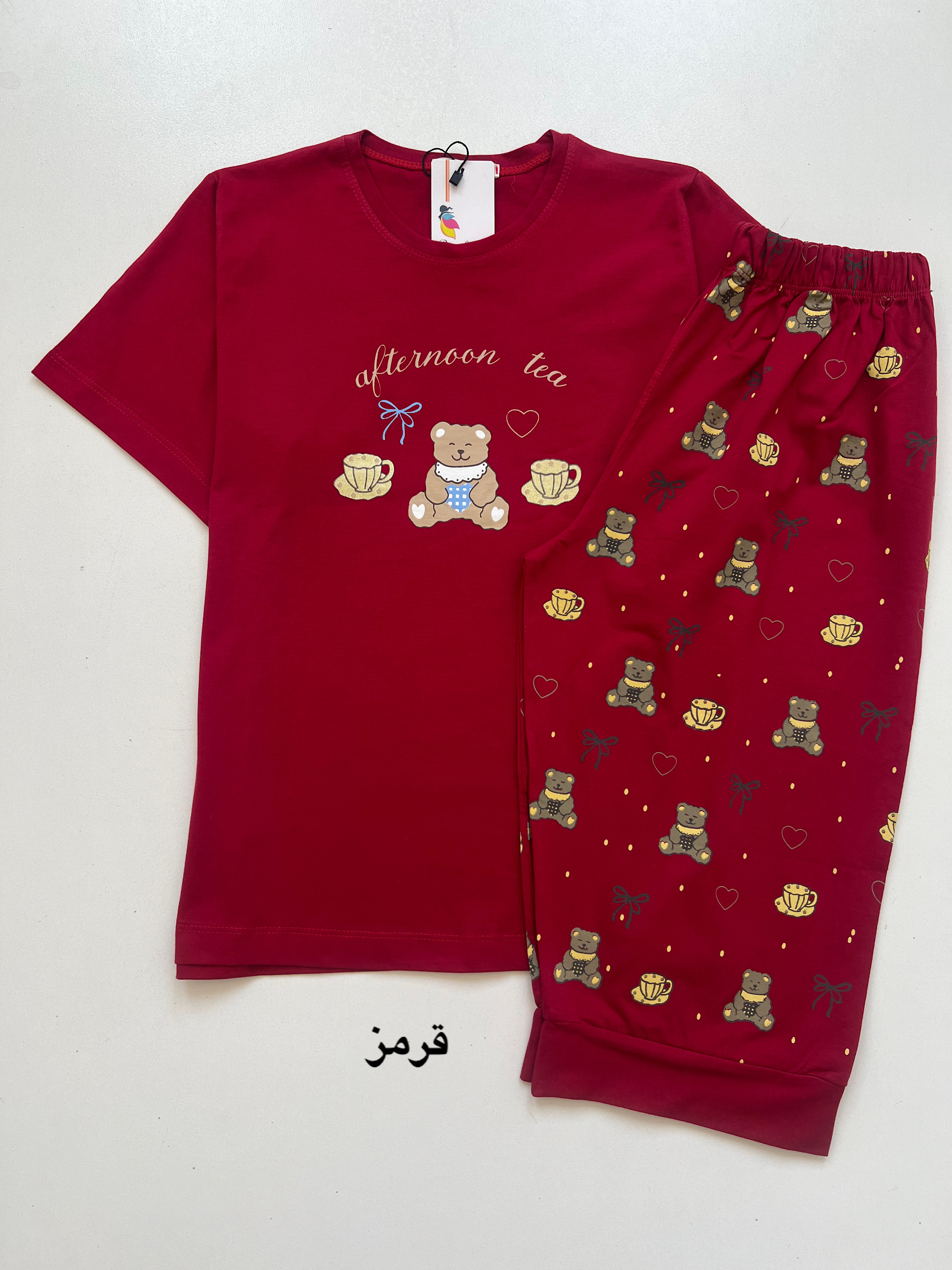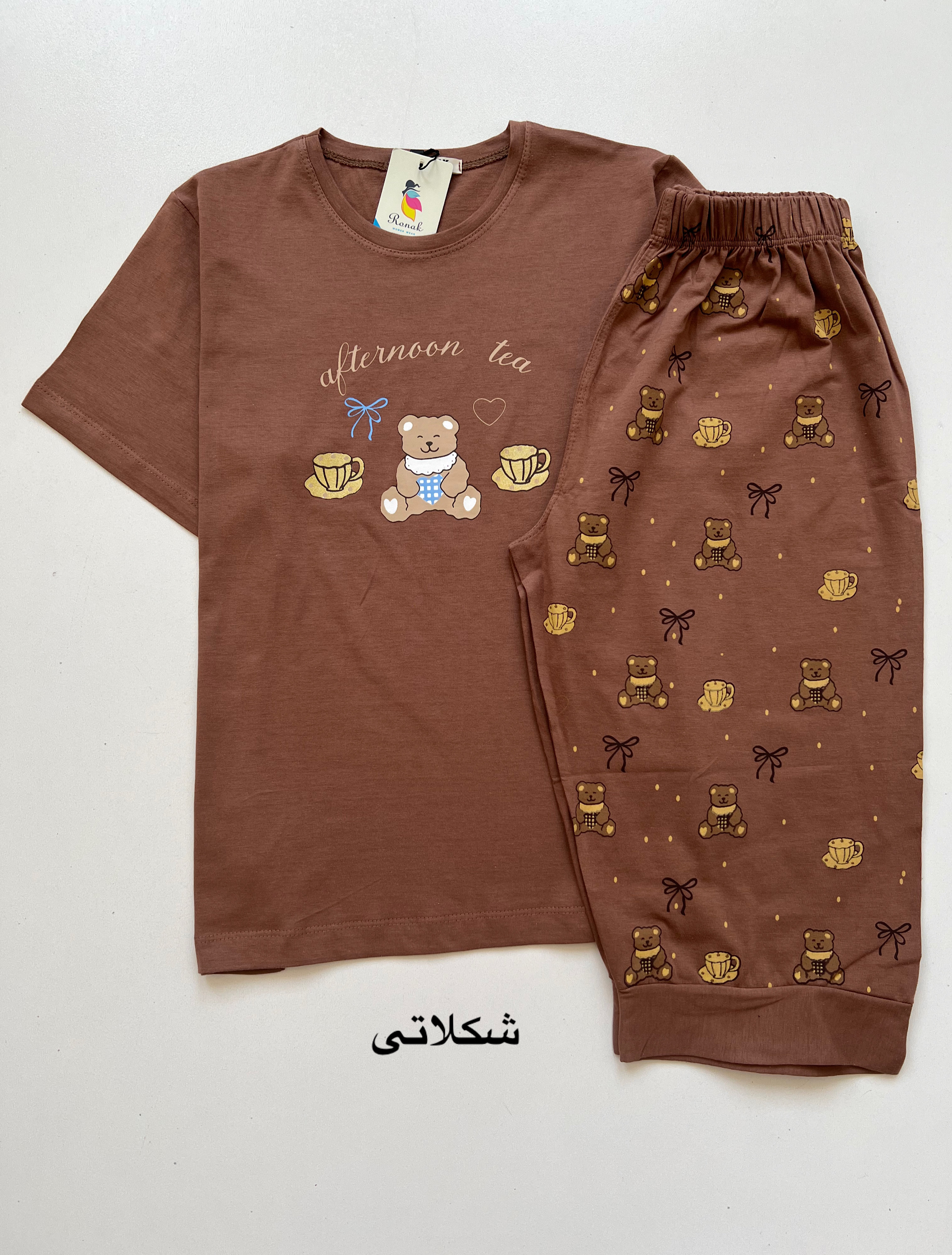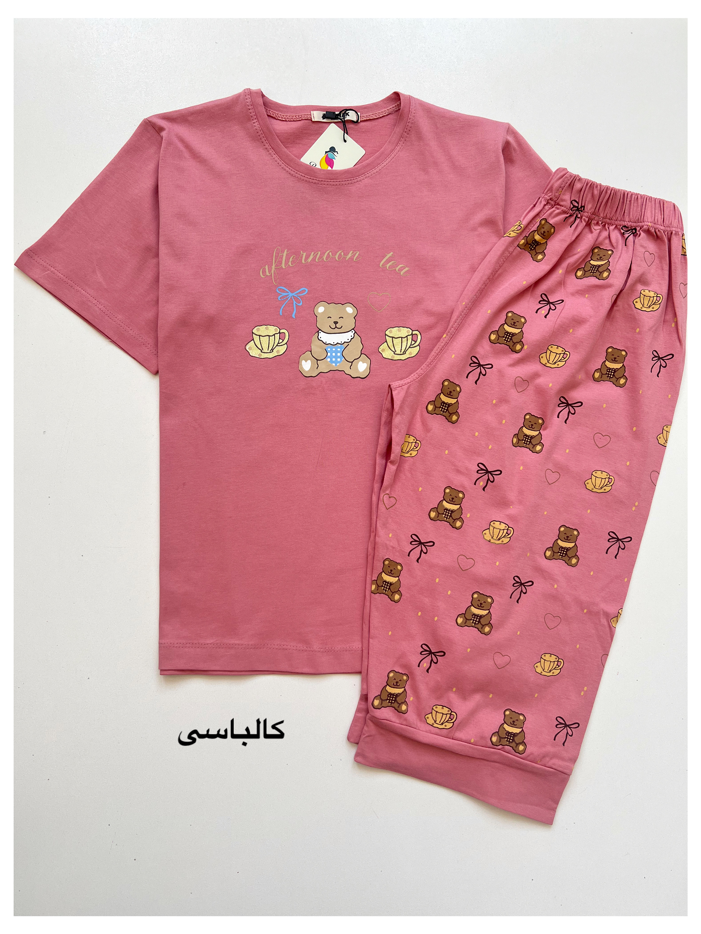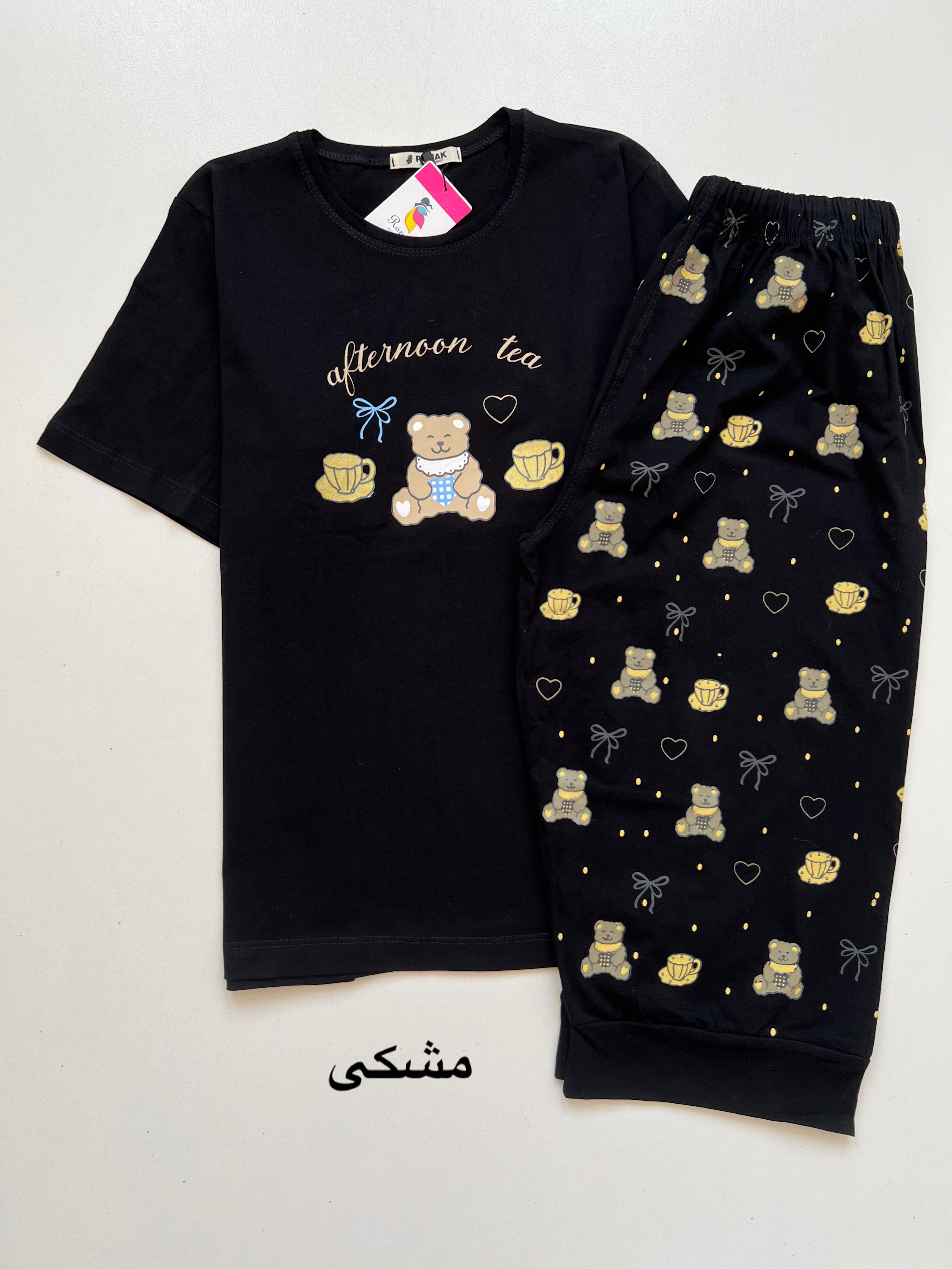 ست تیشرت شلوارک زنانه طرح خرسی جنس نخ پنبه