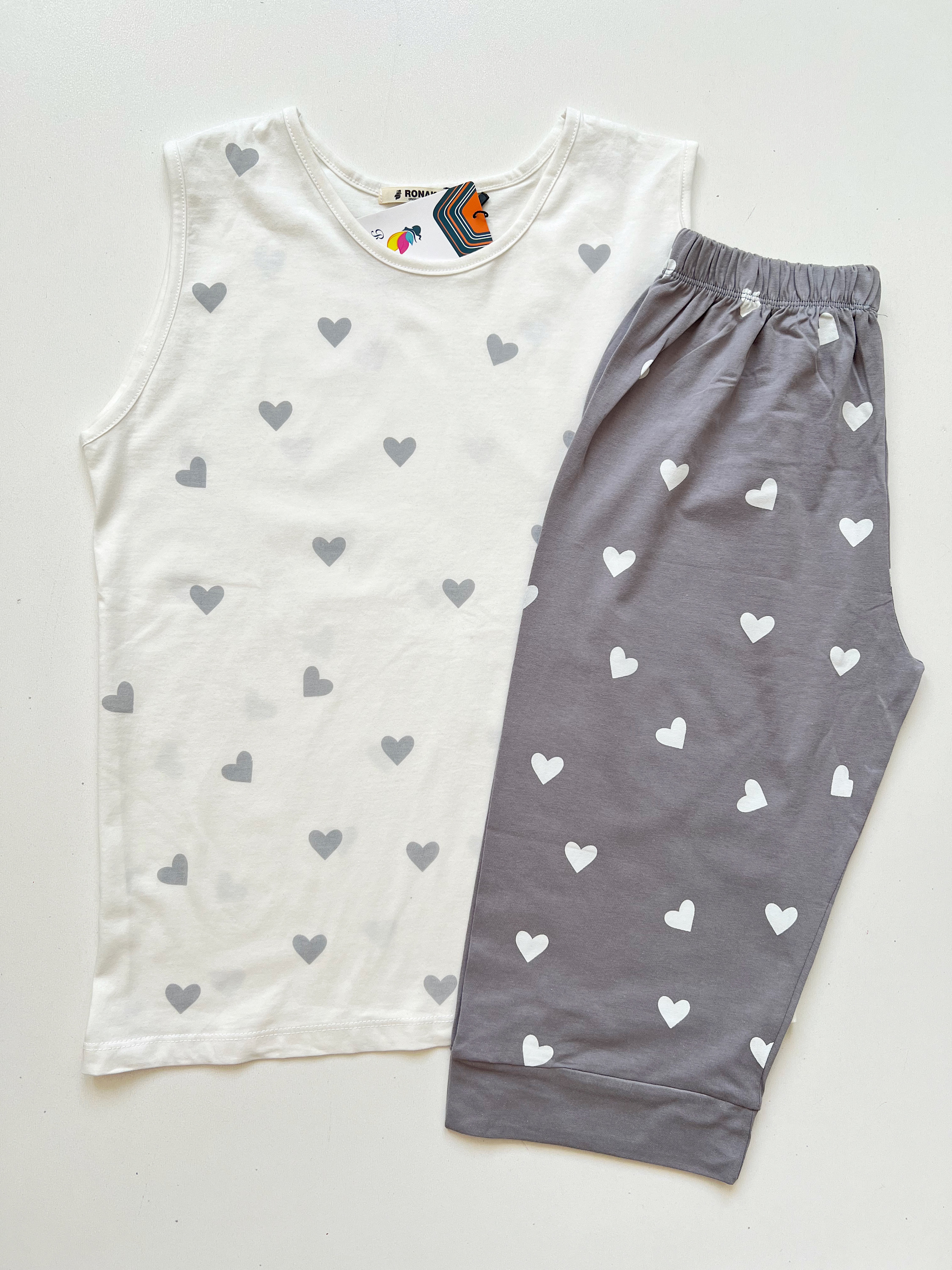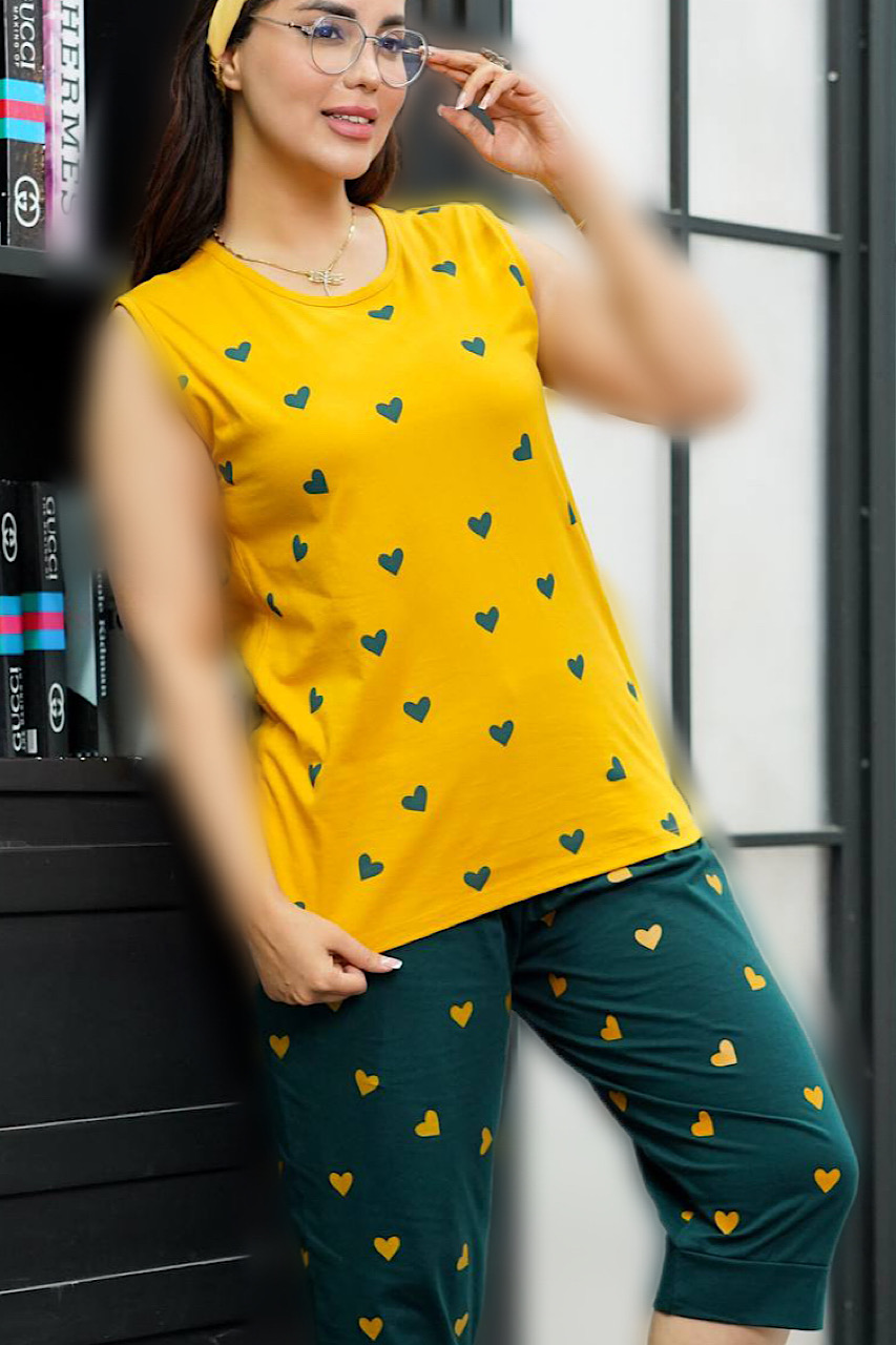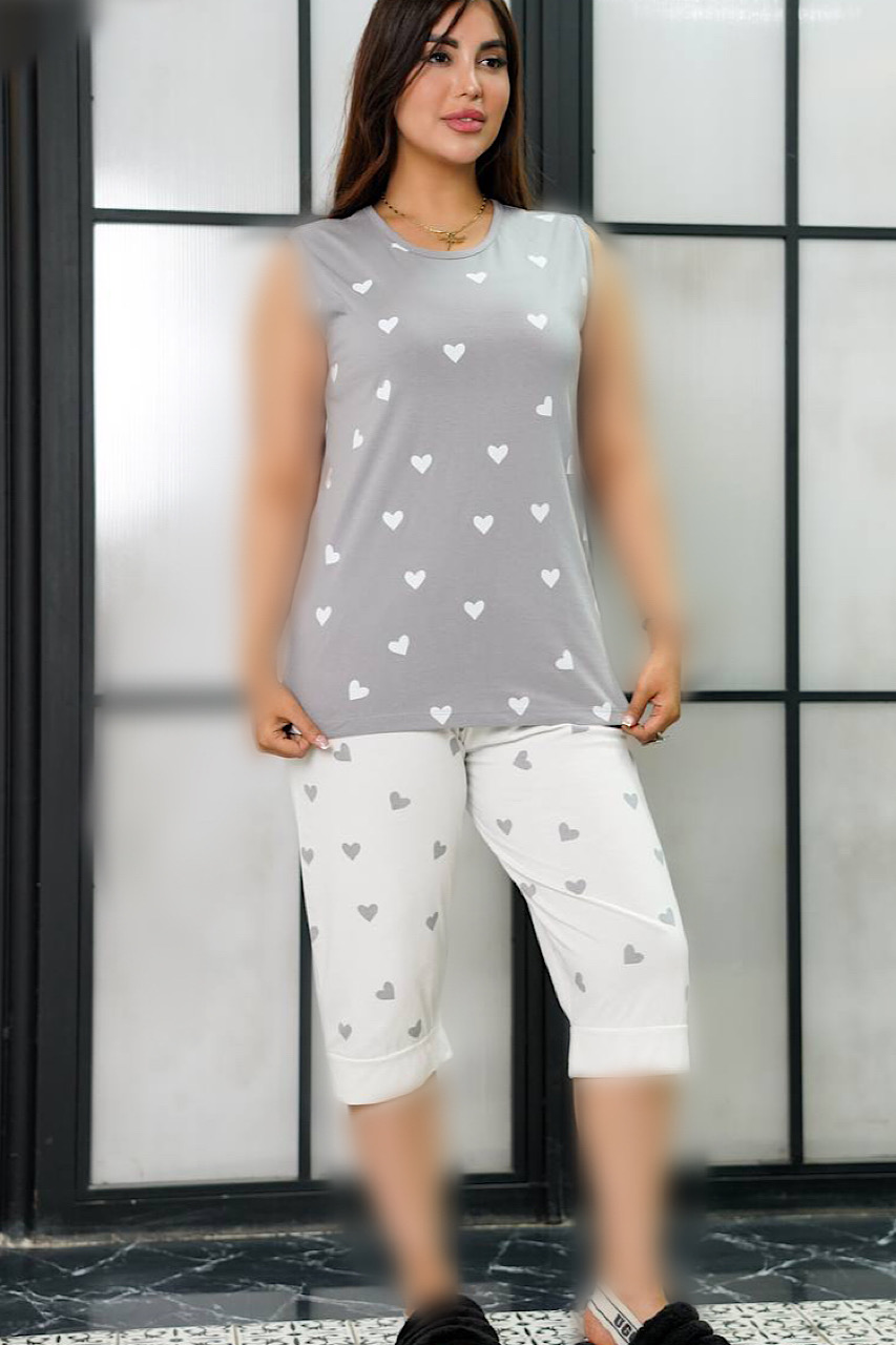 ست تاپ شلوارک زنانه طرح قلب جنس نخ پنبه