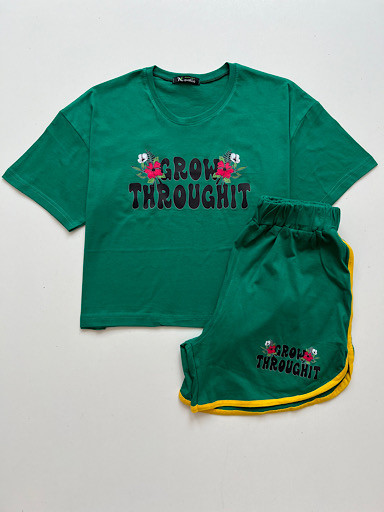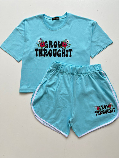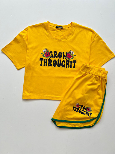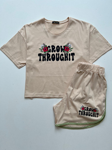 🌸 ست کراپ شورتک با طرح نوشته انگلیسی